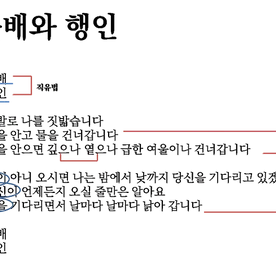 능동적인 읽기(2)-오아시스 세탁소 습격 사건 능동적인 읽기02 오아시스 세탁소 습격 사건연극과 영화 연극영화공통점일정한 시/공간적 배경을 바탕으로 인물의 갈등과 해소를 전달하는 예술 시대적 상황과 관련된 사회문화적 요소가 반영됨 차이점배우가 관객을 대상으로 무대에서 연기 시공간적, 등장인물 수의 제약이 존재 대본 : 희곡 배우의 연기를 촬영하고 편집한 영상 시공간적, 등장인물 수의 제약이 덜함 대본 : 시나리오 - 희곡의 구성 요소1) 해설 : 희곡의 첫머리에서 등장인물, 배경, 무대 장치등을 설명하는 글 2) 대사 : ① 대화 - 등장인물 사이에서 주고받는 말② 독백 - 등장인물이 상대방 없이 혼자 하는 말③ 방백 - 무대 위의 다른 인물에게는 들리지 않고, 관객에게만 들리는 것으로 약속하고 하는 말/행동3) 지시문 : 무대장치, 조명, 음향효과.. 더보기 능동적인 읽기(1)-나룻배와 행인 능동적인 읽기01 나룻배와 행인나룻배와 행인 종류자유시/서정시 운율내재율 성격명상적, 상징적어조여성적 어조 제재나룻배, 행인 주제희생과 인내를 통한 참된 사랑 특징- 헌신적인 사랑과 기다림의 의지 - 경어체를 통한 여성적 어조로 희생, 기다림을 효과적으로 표현- '나룻배'와 '행인'의 서로에 대한 태도나룻배 행인 4, 5행행인을 업고 물을 건넘 3행흙발로 나룻배를 짓밟음 6, 9 행 행인을 기다림 8행 행인이 올 것이라는 것에 대해 희망을 가짐7행물만 건너면 나룻배를 두고 가버림결론 : 나룻배는 행인에게 헌신적이고 희생하지만, 행인은 나룻배에게 무관심함- 시적 화자가 자신을 나룻배에 빗대어 표현한 이유 시를 해석하는 방법 작품 자체에 중점을 두고 해석(내재적 관점) 작품 밖에 중점을 두고 해석(외재적 관.. 더보기 기권과 우리 생활(1) - 기권 기권과 우리 생활01. 기권기권의 구조- 기권의 구조대기 : 지구를 둘러싸고 있는 기체① 대기의 구성 성분 : 기권 : 대기가 차지하는 권역② 기권의 구조 :대류권지표면~약 11km - 기권의 공기 중 약 80%가 분포 - 높이 올라갈수록 기온이 낮아져서 대류 현상 발생 + 공기 중에 수증기 포함 -> 눈, 비, 구름 같은 기상 현상 발생 성층권 대류권 계면~약 50km - 오존층 존재 : 태양 자외선 흡수 - 오존이 자외선을 흡수 : 높이 올라갈수록 기온 상승 -> 대류가 발생하지 않아 기상 현상은 발생하지 않는다 중간권성층권 계면~약 80km - 높이 올라갈수록 기온이 낮아진다. - 그러나, 수증기가 거의 존재하지 않아 기상 현상은 발생하지 않는다 - 유성이 나타나기 시작한다 열권 중간권 계면~약 1.. 더보기 이전 1 ··· 12 13 14 15 16 17 18 다음
